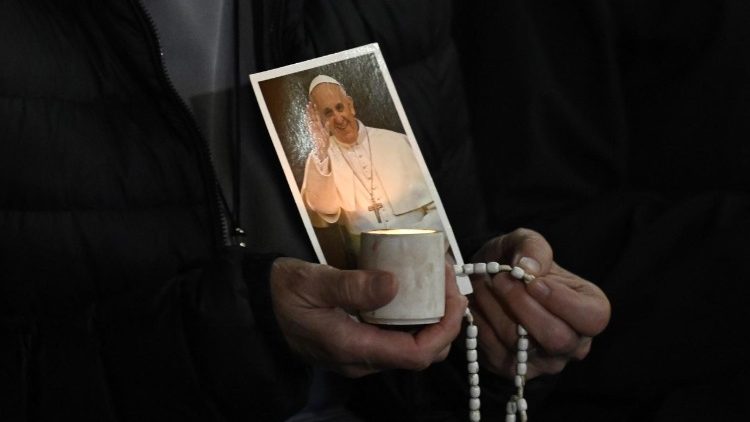(ZENIT News / Vatican City 03.06.2025).- At the beginning of the prayer of the Rosary on Thursday, March 6, around 9 p.m. in St. Peter’s Square, the voice of Pope Francis was heard by those present, who, with a clearly weakened voice, expressed his gratitude for the prayers for his health: