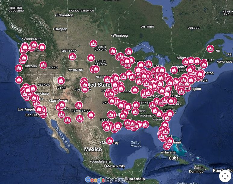 Hotspots with large clusters of attacks include New York City (46) and the metro areas of Los Angeles (27); Philadelphia (16); Denver (15); Portland, Oregon (15); San Francisco/Bay Area (14); Boston (11); Washington, D.C. (11); Pittsburgh (10); Seattle (8); Miami/Fort Lauderdale (8); Chicago (8); Omaha (7); Houston (7); Cincinnati (6); Louisville (6); and San Antonio (6). Some of the churches have been attacked multiple times.