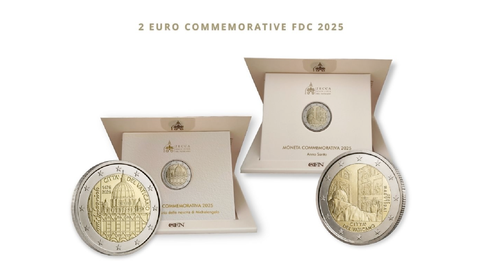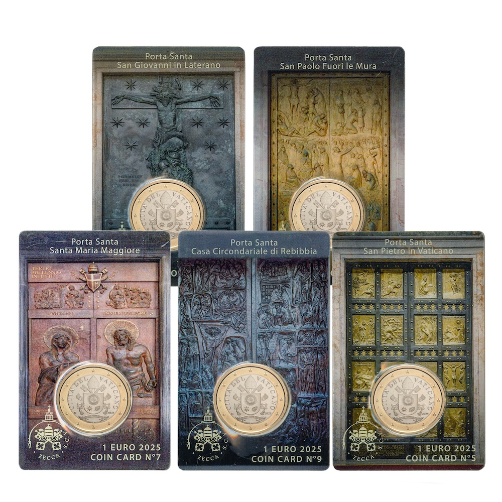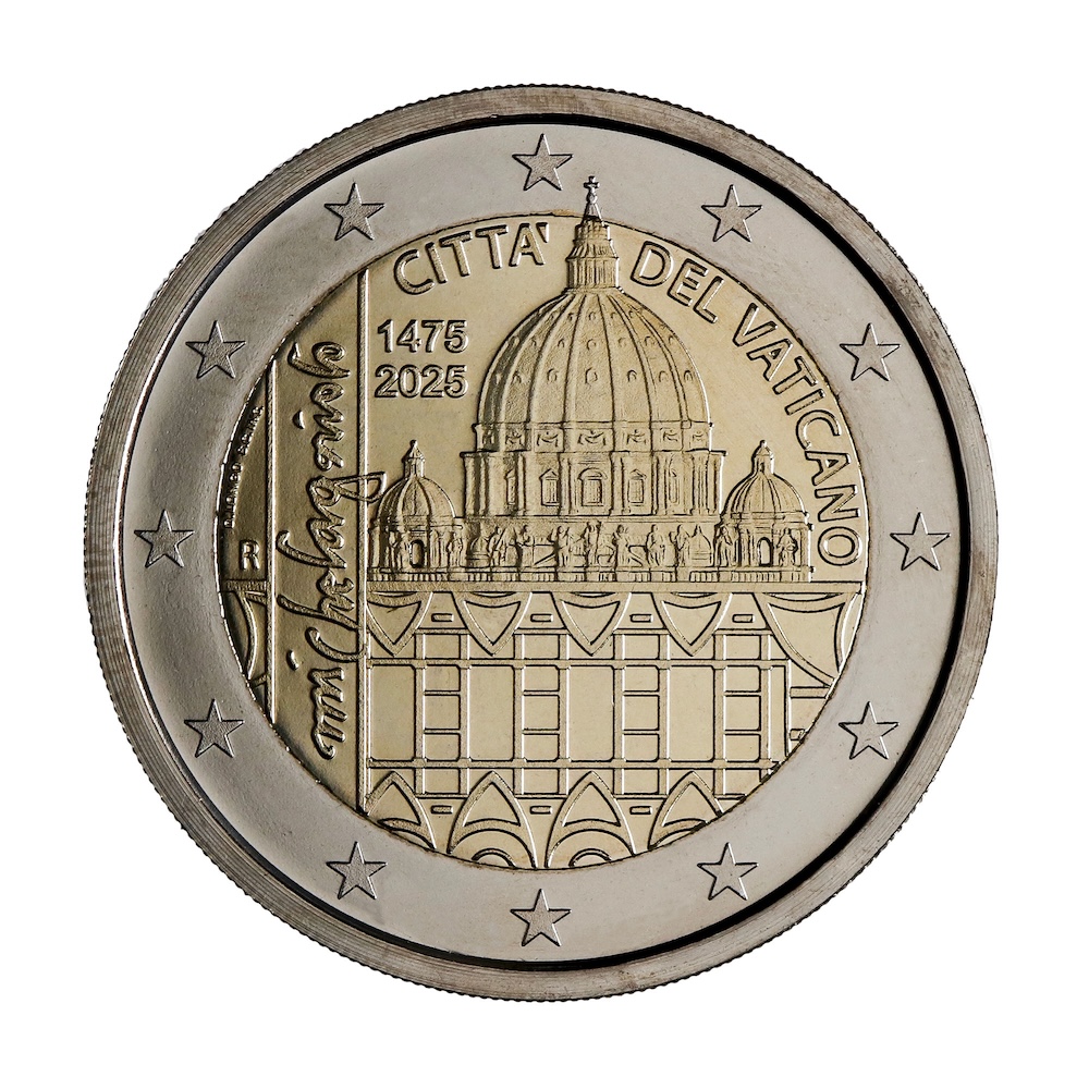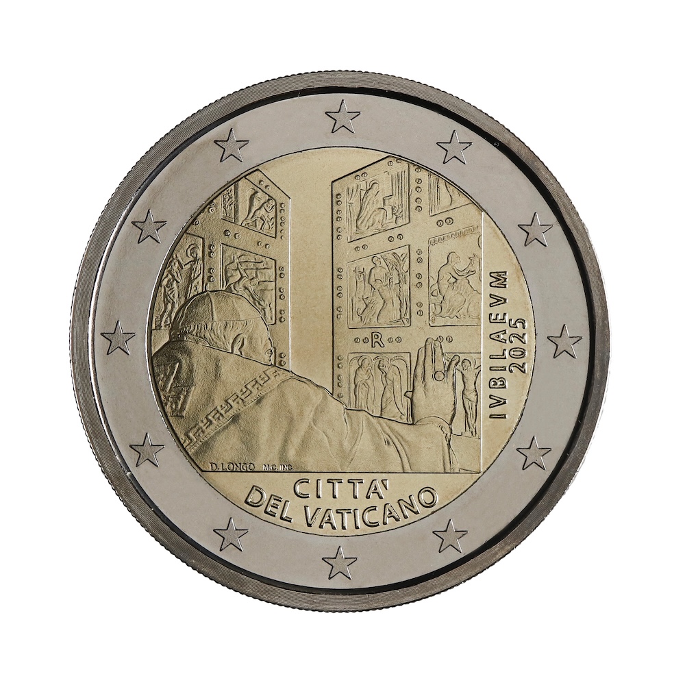 The journey continues with the 2-euro BU coin for the Holy Year MMXXV, recalling the central event of 2025: the opening of the Holy Door of the Vatican Basilica by Pope Francis on Christmas Eve night. The image of the late Pontiff in the solemn act of opening the Holy Door takes on profound symbolic significance, commemorating the beginning of the Jubilee and renewing the universal call to conversion, hope and reconciliation.
