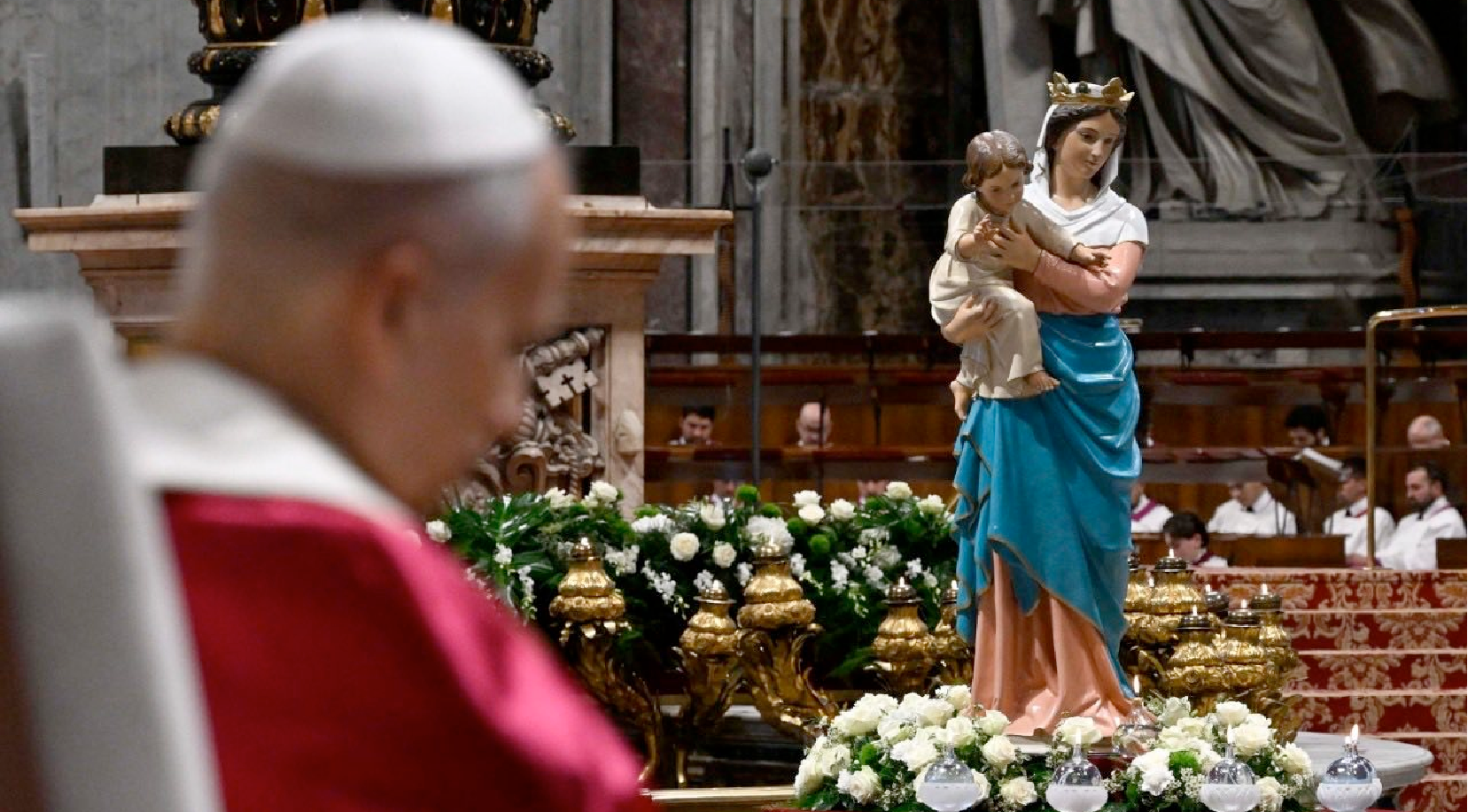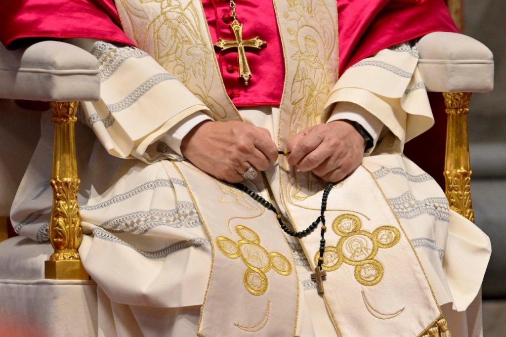 The Rosary, like other ancient forms of prayer, has united us this evening in its steady rhythm built on repetition.  Peace gains ground in the same way: word by word, deed by deed, just as a rock is hollowed out drop by drop, or fabric woven stitch by stitch.  These are the slow rythms of life, a sign of God’s patience.  We must not allow ourselves to be overwhelmed by the pace of a world that does not know what it is chasing.  Rather, we must return to serving the rhythm of life, the harmony of creation and healing its wounds.  As Pope Francis taught us, “There is also a need for peacemakers, men and women prepared to work boldly and creatively to initiate processes of healing and renewed encounter” (Encyclical Letter Fratelli Tutti, 225). There is, indeed, “an ‘architecture’ of peace, to which different institutions of society contribute, each according to its own area of expertise, but there is also an ‘art’ of peace that involves us” (ibid., 231).