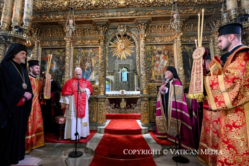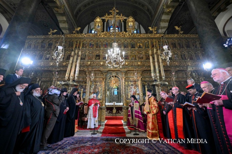 (ZENIT News / Istambul, 11.29.2025).- The Patriarchal Church of St. George, seat of the Ecumenical Patriarchate of Constantinople, received a visit from Pope Leo XIV on Saturday, November 29. The visit took place in the context of the Holy Father’s apostolic journey to Turkey, a trip with ecumenical connotations, as Leo XIV himself acknowledged in his meeting with journalists during the flight from Rome to Ankara. Below are the brief words of the Bishop of Rome translated into English: