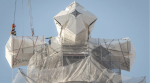 Barcelona: Four Horizontal Arms of the Cross Are Installed on the Tower of Jesus Christ at the Basilica of the Holy Family